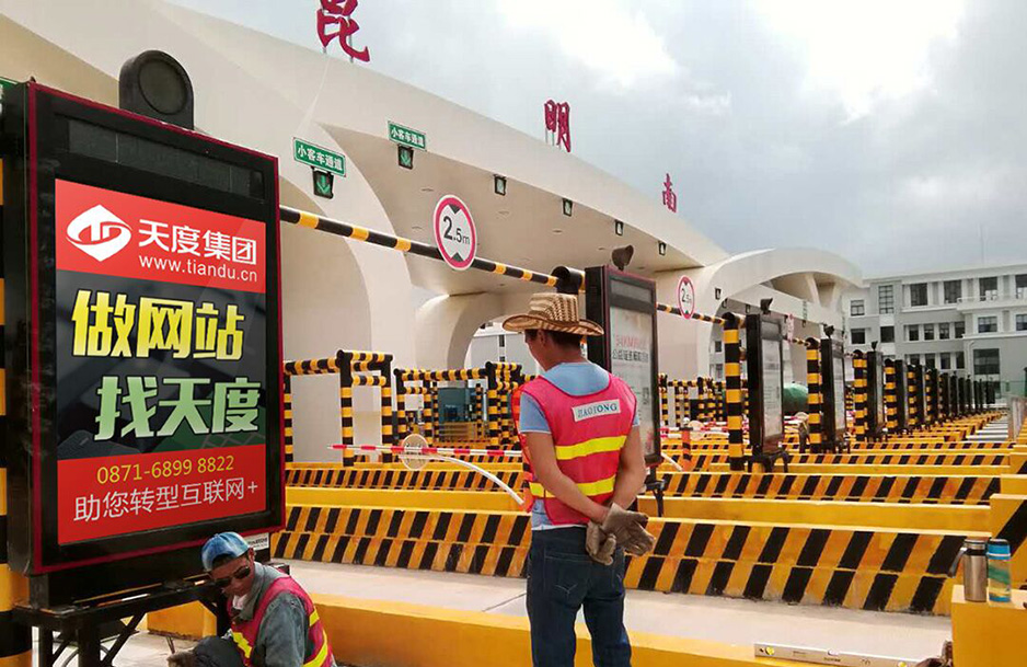 2017年8月21日,天度集團投入巨資,在全國較大的收費站“新昆玉收費站”投入的35個雙向收費口廣告上線。