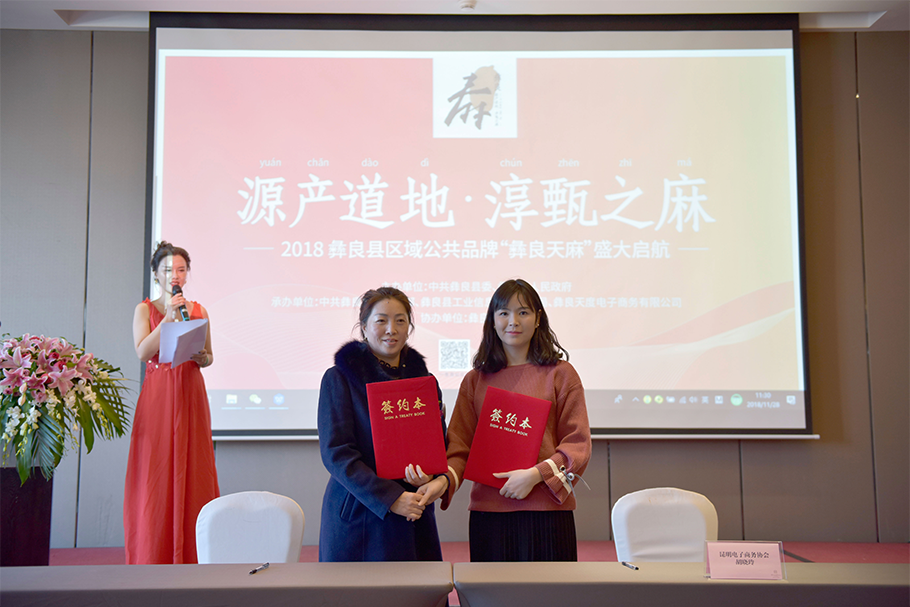 彝良谷生天麻種植有限公司尹芹與昆明電子商務(wù)協(xié)會(huì)胡曉玲秘書(shū)長(zhǎng)簽署戰(zhàn)略合作協(xié)議