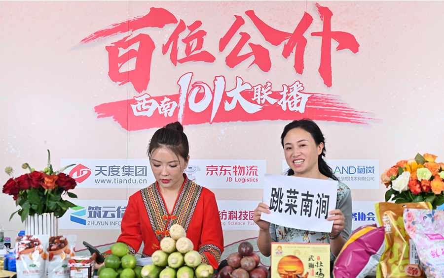 6月17日下午,“百位公仆,西南101大聯(lián)播”大型助農(nóng)直播活動(dòng)在云紡科技園直播基地舉行,來(lái)自云南巍山、南澗、水富、個(gè)舊、開(kāi)遠(yuǎn)、彝良、武定、景東、景谷等縣(市)的11位副縣(市)長(zhǎng),與四川知名電視主持人、直播記者郭秀一同走進(jìn)直播間,同框出鏡,為云南各地好貨代言,推動(dòng)農(nóng)產(chǎn)品推廣上行,助力脫貧攻堅(jiān)。近3小時(shí)的直播中,特色的農(nóng)產(chǎn)品、實(shí)惠的價(jià)格,以及豐厚的贈(zèng)品吸引了260多萬(wàn)網(wǎng)友圍觀。