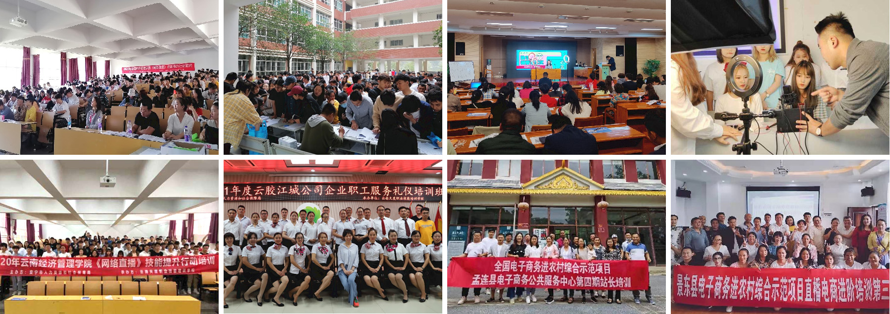 高校技能培訓也是學校的重點工作,天度培訓學校為云南經(jīng)濟管理學院、云南工商學院近2000名學生進行職業(yè)技能提升培訓,熱門專業(yè)包括電子商務運營管理、SYB創(chuàng)業(yè)培訓、網(wǎng)絡創(chuàng)業(yè)培訓、網(wǎng)絡直播培訓、人力資源管理師等。 我校在云南經(jīng)濟管理學院畢業(yè)生網(wǎng)絡直播培訓中,創(chuàng)下一周內開展15個班、共計1345人的培訓記錄,并創(chuàng)新《網(wǎng)絡直播培訓》教材。結合課程的實際需求,開發(fā)了符合實際需求的線上線下培訓課程體系,研發(fā)以電商運營為基礎、網(wǎng)絡直播為手段的應用性教材。