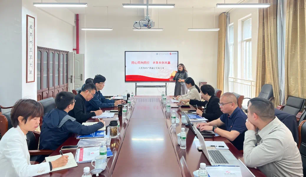座談會(huì)上,與會(huì)人員共同觀看了云南天度投資集團(tuán)宣傳片,胡婷婷就“產(chǎn)業(yè)學(xué)院建設(shè)定位”“產(chǎn)業(yè)學(xué)院建設(shè)內(nèi)容”“預(yù)期成效”四個(gè)方面對(duì)產(chǎn)教融合實(shí)施方案進(jìn)行了詳細(xì)介紹,以“共建、共管、共享”的合作理念,聚焦云南及臨滄產(chǎn)業(yè)需求,在專業(yè)建設(shè)、課程開(kāi)發(fā)、師資共建、就業(yè)服務(wù)等方面深化合作。隨后,與會(huì)人員就產(chǎn)業(yè)學(xué)院建設(shè)等相關(guān)情況進(jìn)行了深入交流研討,達(dá)成了一定共識(shí)。