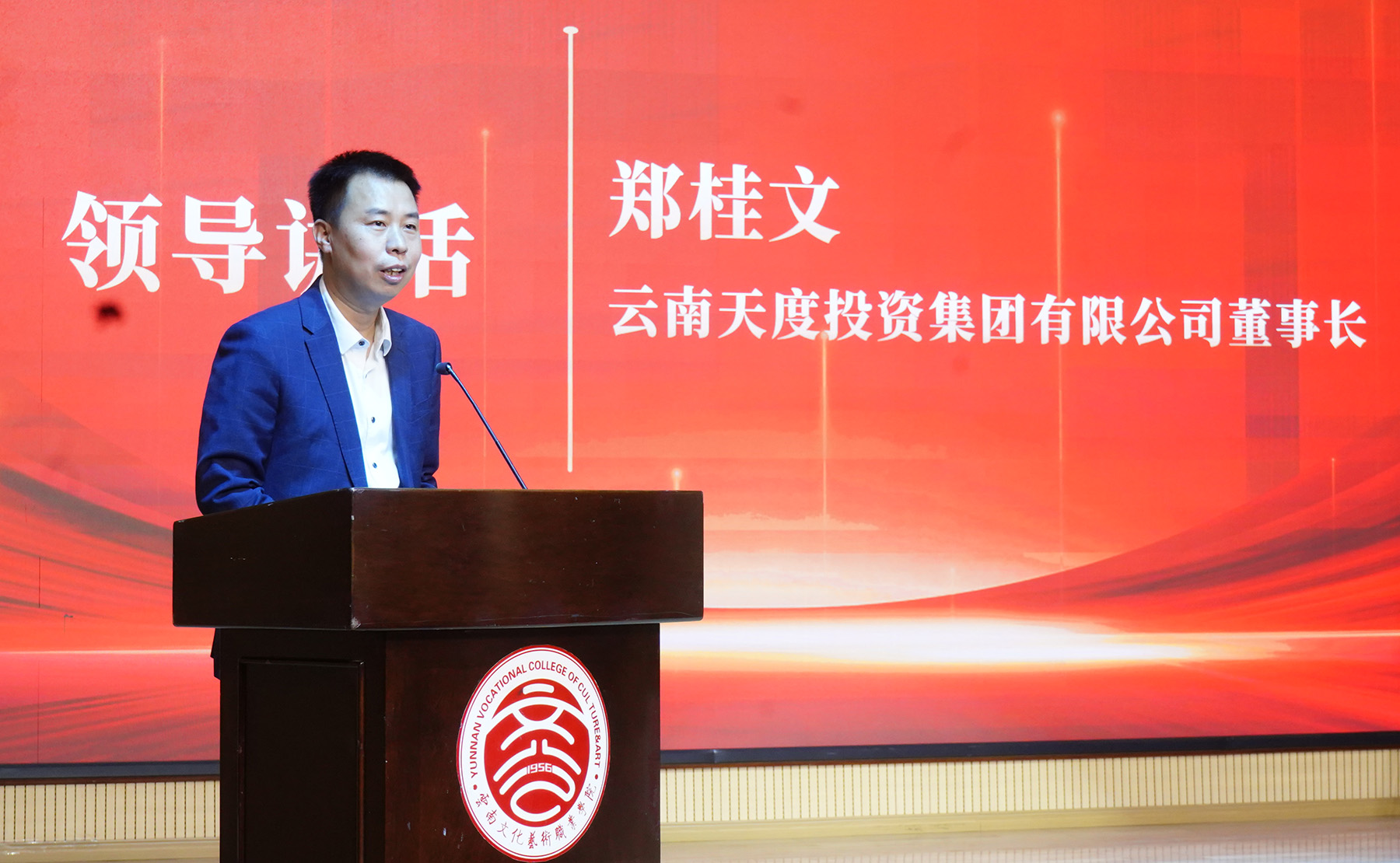 鄭桂文董事長在致辭中表示,此次合作是校企雙方貫徹落實國家職業(yè)教育改革政策、深化產(chǎn)教融合的重要舉措,也是天度集團(tuán)踐行“以產(chǎn)業(yè)反哺教育、以教育賦能未來”使命的重要一步。天度集團(tuán)將發(fā)揮其作為區(qū)域數(shù)字經(jīng)濟(jì)龍頭企業(yè)所擁有大數(shù)據(jù)研究院、博士后科研工作站等技術(shù)資源優(yōu)勢,以及深耕數(shù)字經(jīng)濟(jì)20年的產(chǎn)業(yè)優(yōu)勢,與學(xué)校共同聚焦融媒體技術(shù)與運營、人工智能技術(shù)應(yīng)用、軟件技術(shù)、信息安全應(yīng)用技術(shù)等相關(guān)專業(yè),通過“共建共管”模式深化產(chǎn)教融合,圍繞數(shù)字經(jīng)濟(jì)、文旅融合等重點產(chǎn)業(yè)發(fā)展需求,共同建設(shè)校內(nèi)外實訓(xùn)基地,克隆企業(yè)真實研發(fā)環(huán)境,構(gòu)建專業(yè)集群交叉矩陣,共同制定專業(yè)發(fā)展規(guī)劃,定期評估產(chǎn)業(yè)趨勢,動態(tài)優(yōu)化課程體系,保持教學(xué)內(nèi)容與產(chǎn)業(yè)發(fā)展同步,實現(xiàn)“產(chǎn)業(yè)需求進(jìn)大綱、技術(shù)標(biāo)準(zhǔn)進(jìn)課堂、真實項目進(jìn)實訓(xùn)”,合力打造精準(zhǔn)適配市場需求的特色專業(yè)集群,培養(yǎng)數(shù)字經(jīng)濟(jì)領(lǐng)域高素質(zhì)技術(shù)技能型人才,賦能區(qū)域數(shù)字經(jīng)濟(jì)、文旅融合等重點產(chǎn)業(yè)發(fā)展。鄭董事長還強(qiáng)調(diào)指出,希望通過此次合作,雙方將進(jìn)一步推動成立產(chǎn)業(yè)學(xué)院并使其成為云南文化藝術(shù)產(chǎn)業(yè)數(shù)字化的“創(chuàng)新引擎”,讓每一位學(xué)子在這里找到“用技術(shù)守護(hù)文化、用創(chuàng)意點亮人生”的舞臺!共同書寫產(chǎn)教融合的新篇章,為云南乃至全國的數(shù)字經(jīng)濟(jì)及文旅融合產(chǎn)業(yè)注入新的活力與動能!