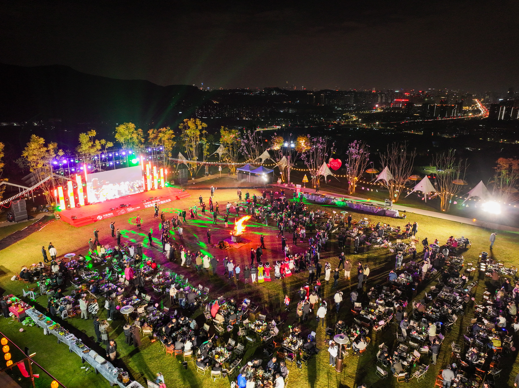 晚上七點(diǎn)半,伴隨主持人倒數(shù),一束束流光劃破夜空,絢麗的煙花層層綻放,如錦繡般鋪滿天幕。所有人共同仰望,在這璀璨時(shí)刻,許下對(duì)天度、對(duì)彼此最美好的祝愿。 煙花落幕后,篝火旁溫情延續(xù)。多位員工與嘉賓即興上臺(tái)表演,歌聲、朗誦、趣味互動(dòng)接連不斷,為夜晚增添了無(wú)數(shù)驚喜與感動(dòng)。